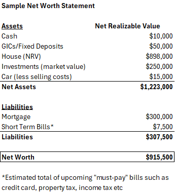 More specifically, it’s the Net Realizable Value (NRV) of your assets minus your liabilities.